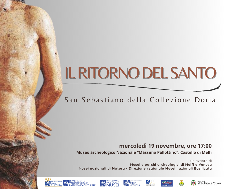 L’evento di inaugurazione dell’esposizione celebra il ritorno della scultura lignea di San Sebastiano di Giovanni da Nola al suo originario contesto, nella Cappella Doria del Castello di Melfi, dopo il restauro e la permanenza nei Musei Nazionali di Matera.